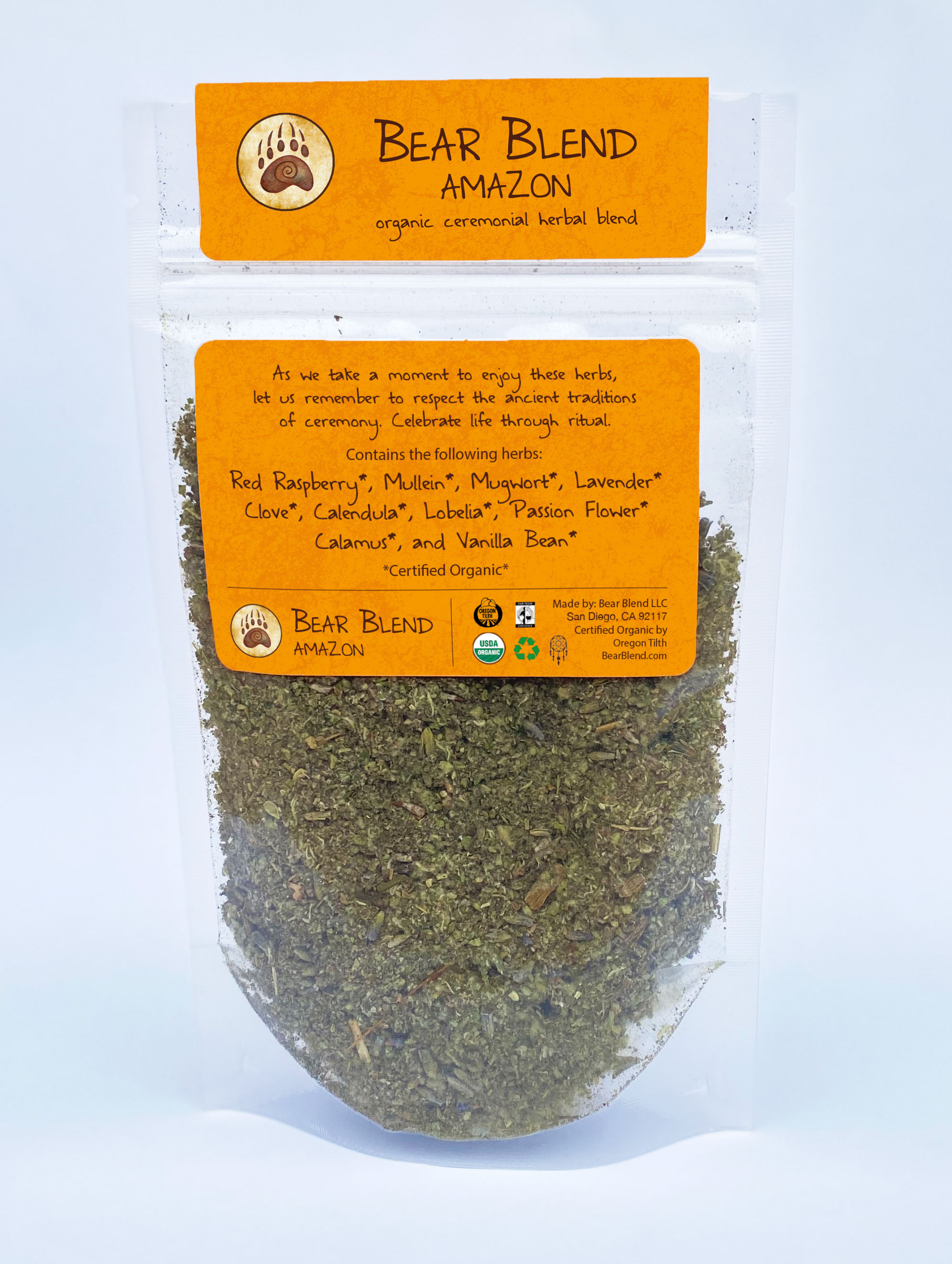 Bear Blend is located in an USDA certified organic facility in Southern California, and are all handcrafted from biodynamic, fair trade, and USDA certified organic herbs.