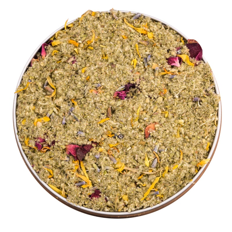 Cons: burns a bit unevenly when smoked by itself/ with by products (*refer to use as a mixing agent section) flowers/lavenders can be a bit harder to chop up and mix in to make for an even smoke, can’t leave it open around cats – if you have cats- there is catnip in this so yeah, don’t leave it open around your cats