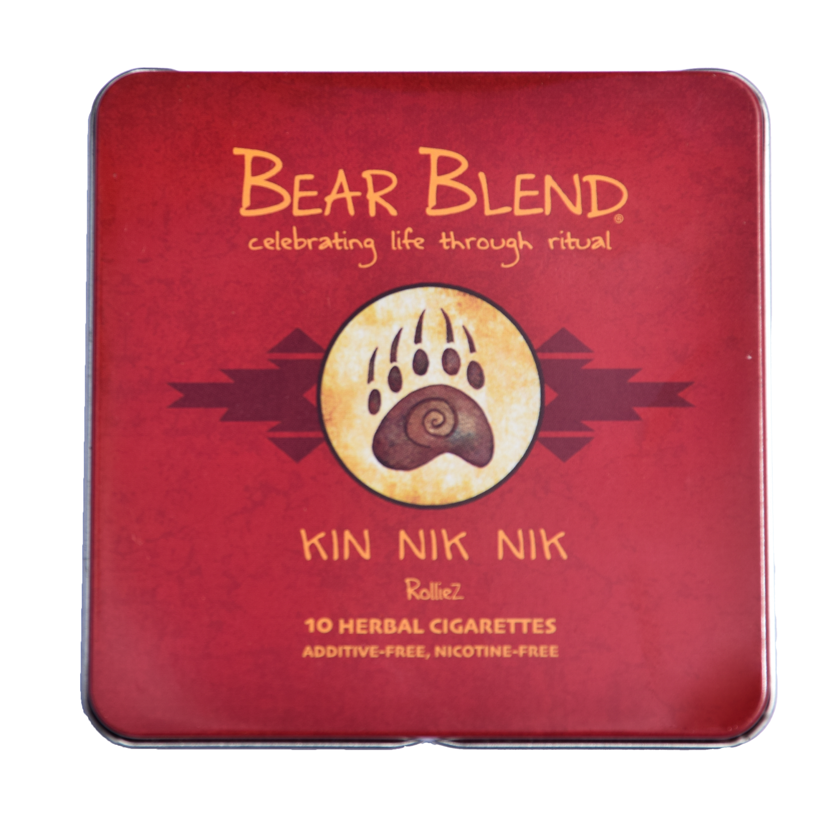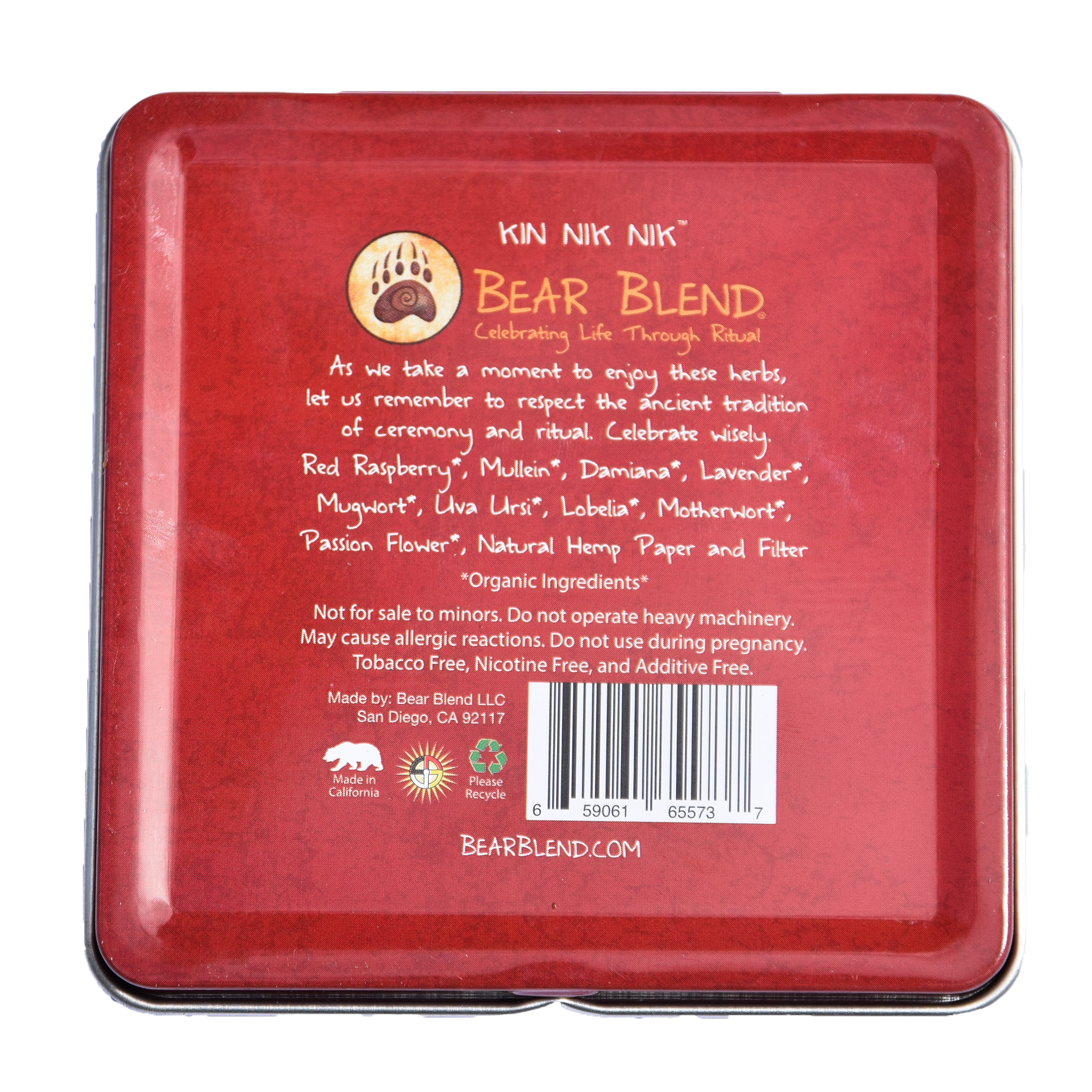 Our new Herbal Cigarettes are made with 100% natural Hemp paper and filter*.  These are Nicotine-free and additive-free.   Each tin comes packed with 10 cigarettes, with each cigarette containing 0.8g-1g of Kin Nik Nik.  Bear Blend Herbal Cigarettes come in a sleek flip-top tin, perfect for sharing and passing to the left.