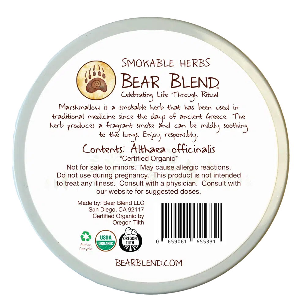Known botanically as Althaea officinalis, Marshmallow is a soft and soothing herb with a long history of use in traditional herbalism. Its roots and leaves have been valued for centuries for their gentle, calming effects on the lungs and throat. As a smokable herb, Marshmallow is prized for its smooth, mellow quality and ability to add body, balance, and a velvety texture to any blend.
