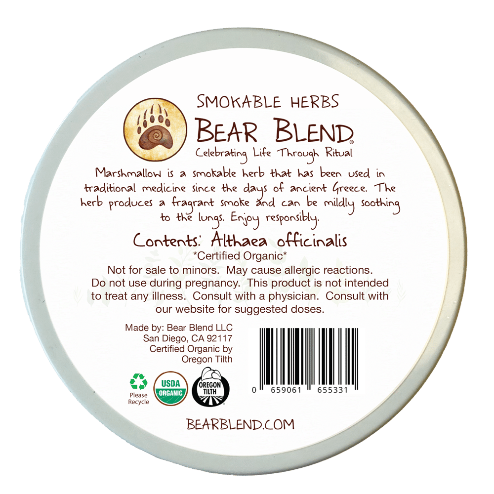 Known botanically as Althaea officinalis, Marshmallow is a soft and soothing herb with a long history of use in traditional herbalism. Its roots and leaves have been valued for centuries for their gentle, calming effects on the lungs and throat. As a smokable herb, Marshmallow is prized for its smooth, mellow quality and ability to add body, balance, and a velvety texture to any blend.