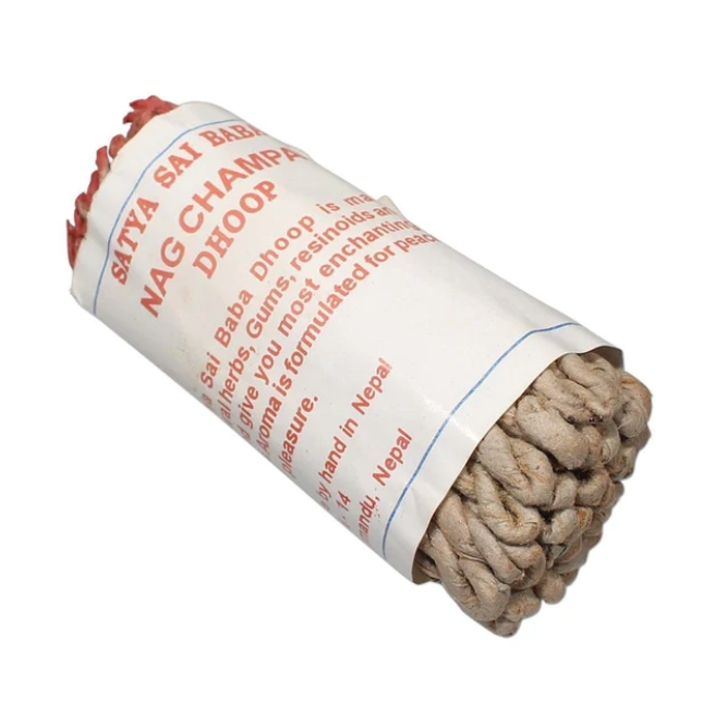 Our fragrant Sai Baba Nag Champa Dhoop Nepali Rope Incense is crafted from herbs of the high Himalayas and is handmade in Nepal. This type of dhoop is typical in Newari community and almost every Nepalese household uses it.