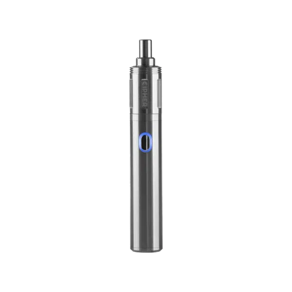 For quick access to the smoking pod, the mouthpiece utilizes a magnet connection that’s easy to remove by applying side-ward pressure to break the magnetic connection. For a more sturdy and stable connection with the battery module, the pod housing utilizes a 90° twist-lock connection. To remove the pod housing to gain access to the arc lighter for cleaning, simply twist it 90° and apply side-ward pressure to break the magnetic connection. When reinstalling the pod housing, always make sure to twist it 90° so that either “CIPHER” or “NOVA” are vertically aligned with the button.