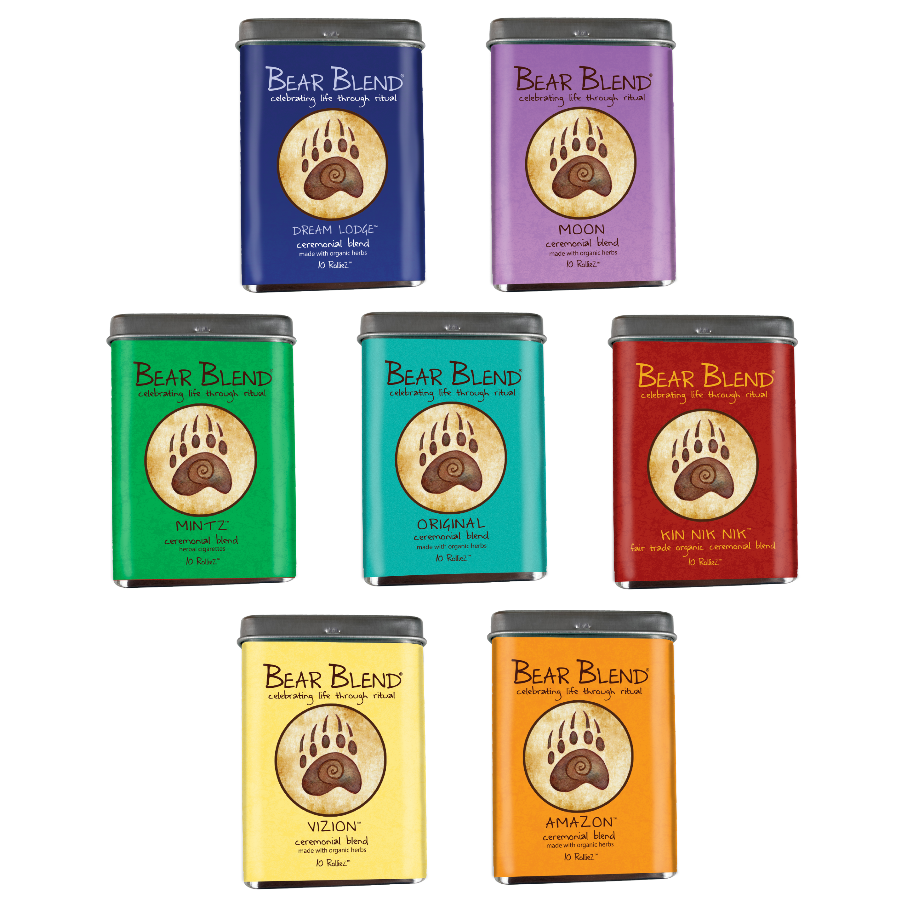 Bear Blends are additive-free herbal smoke blends. Each tin contains 10 herbal prerolls, using in RAW papers with RAW tips. These are nicotine-free and additive-free.
