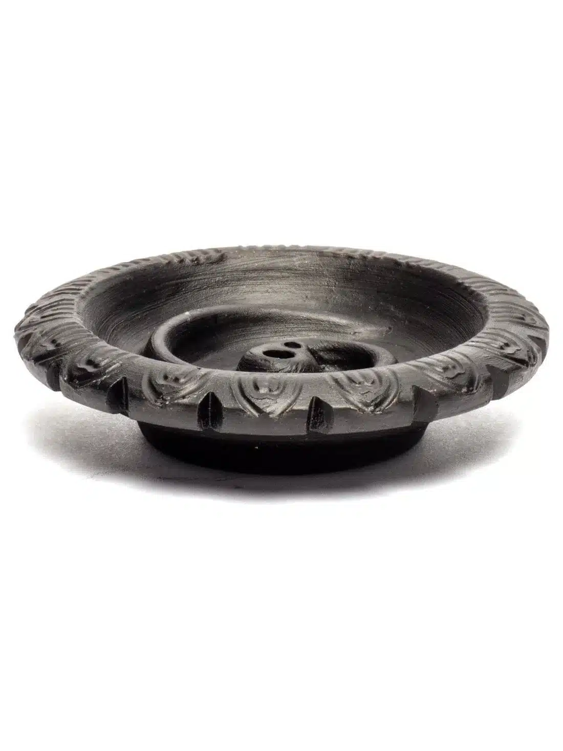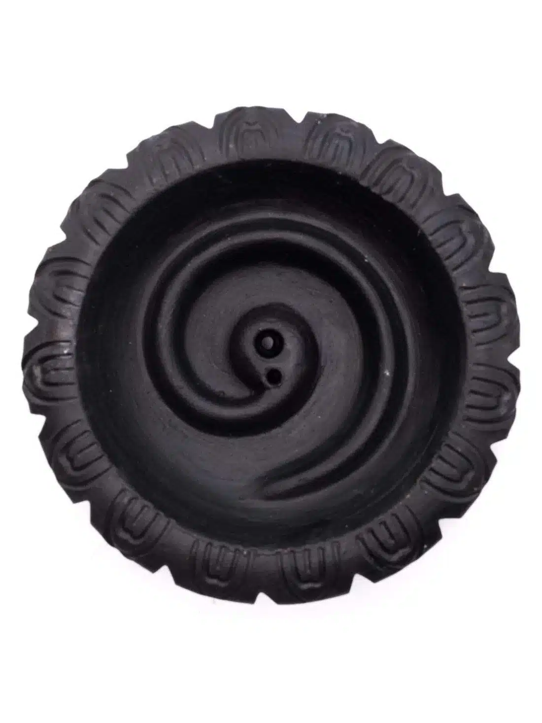 Like a blooming lotus flower, this handmade clay incense burner, resembles the lotus in full bloom. The swirling spiral symbol in the middle represents a myriad of meanings following our journey from being outer directed to the inner direction of the soul and spirit. Perfect for catching ashes from your burning incense sticks or rope incense. Two holes are provided to hold your form of incense. Incense sticks sold separately. Made in Nepal.