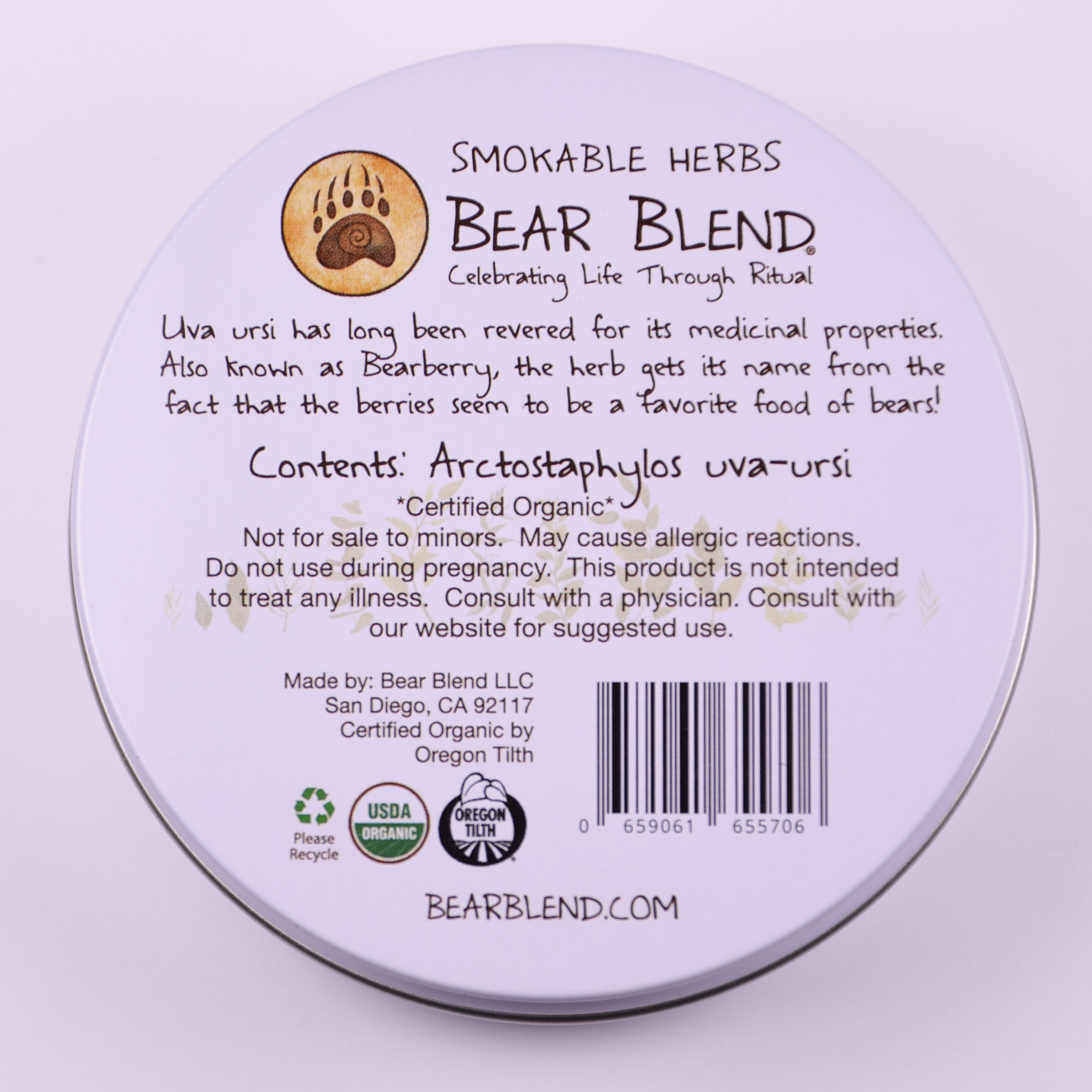Each tin comes with 35 grams of Bear Berry (otherwise known as Uva Ursi or Kinnikinnick