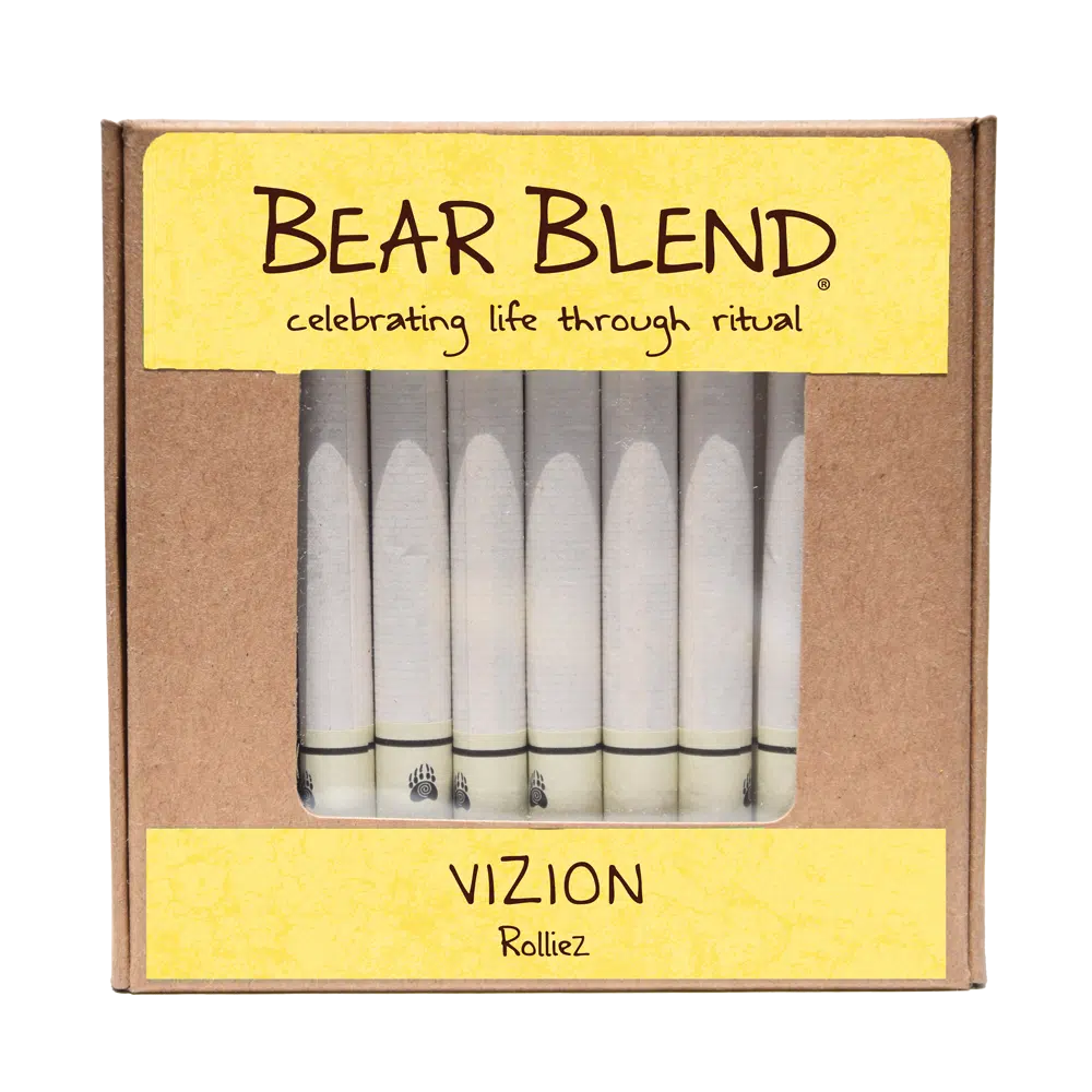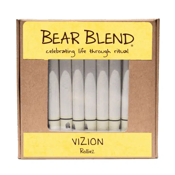 Our new Herbal Cigarettes are made with 100% natural Hemp paper and filter*.  These are Nicotine-free and additive-free.   Each box comes packed with 50 cigarettes, with each cigarette containing 0.8g-1g of Vizion.  These Bear Blend Herbal Cigarettes come in a flip-top cardboard box with a viewing window, perfect for using to reload your tin (or you can buy one of our discrete custom white tins).