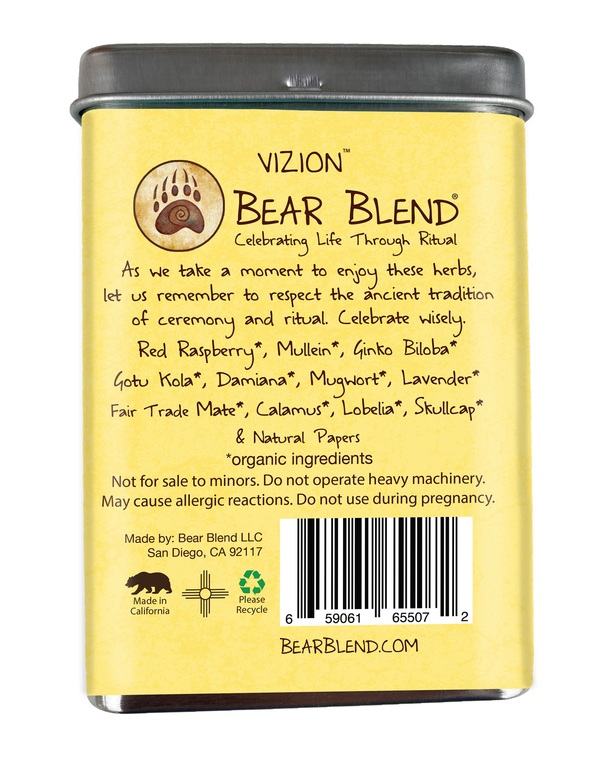 Bear Blend is located in a USDA certified organic facility in Southern California, and are all handcrafted from biodynamic, fair trade, and USDA certified organic herbs.