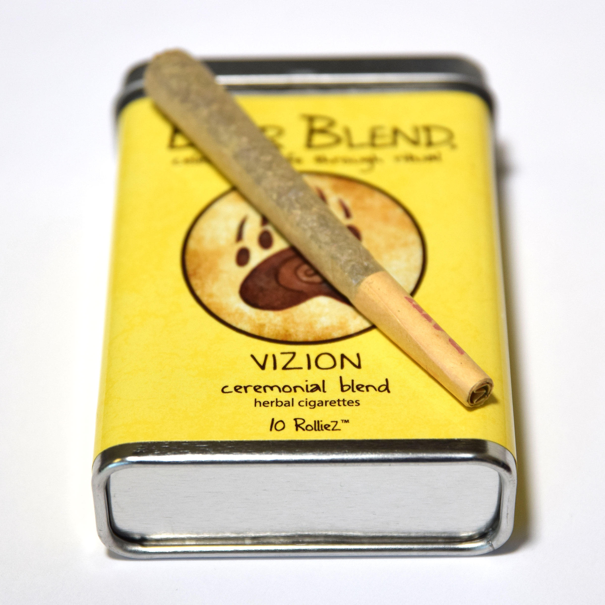 Each tin comes with 10 Vizion herbal prerolls.